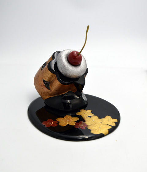 THE FOODS;PUDDING 2022H14 x W17 x D17 cm乾漆、金粉、螺鈿、その他(c) 2009 COMBINE ◀︎ All Works ▶︎ ◀︎ ▶︎ ◀︎ All Works ▶︎