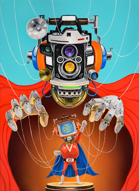 マリオネットとHERO 2025H33.3 x W24.2 cm4 Fキャンバスにアクリルガッシュ(c) 2009 COMBINE ◀︎ All Works ▶︎ ◀︎ ▶︎ ◀︎ All Works ▶︎