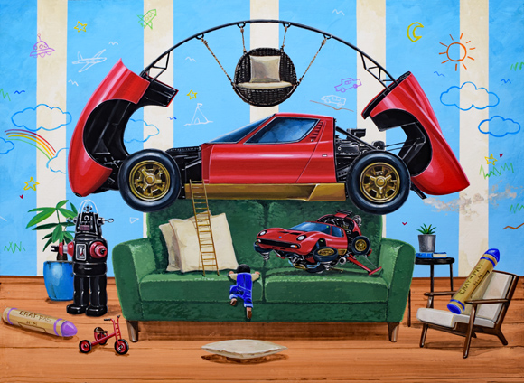 木製パネルにアクリルガッシュ
