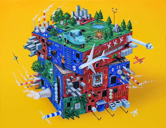 基板地図-BLOCK- 2024H31.8 x W41 cm6 Fキャンバスにアクリルガッシュ(c) 2009 COMBINE ◀︎ All Works ▶︎ ◀︎ ▶︎ ◀︎ All Works ▶︎