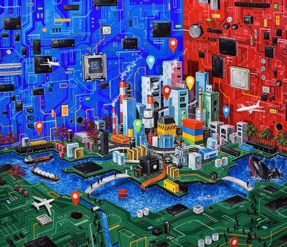 Circuit bord City 2024H45.5 x W53 cm10 F木製パネルにアクリルガッシュ(c) 2009 COMBINE ◀︎ All Works ▶︎ ◀︎ ▶︎ ◀︎ All Works ▶︎