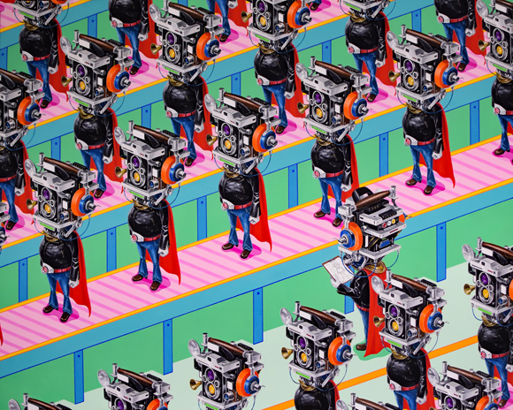 HERO-CONVEYOR 2025H72.7 x W91 cm30 Fキャンバスにアクリルガッシュ(c) 2009 COMBINE ◀︎ All Works ▶︎ ◀︎ ▶︎ ◀︎ All Works ▶︎