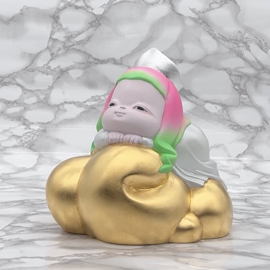 ホワイトローブとゴールデンクラウド 2024H20 x W19 x D15 cmジェスモナイト、アクリル絵具、箔押し(c) 2009 COMBINE ◀︎ All Works ▶︎ ◀︎ ▶︎ ◀︎ All Works ▶︎