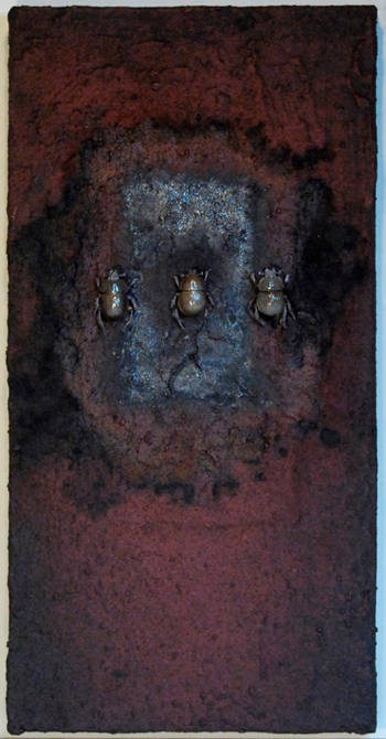 オセンチコガネ ―赤い土― 2016H42.8 x W22.8 x D10.3 cm陶・パネルに陶土、顔料 部分的に高火度焼成(c) 2009 COMBINE ◀︎ All Works ▶︎ ◀︎ ▶︎ ◀︎ All Works ▶︎