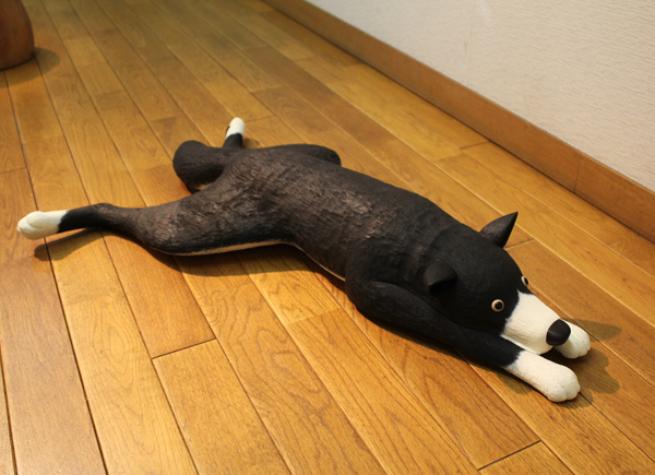 見上げる犬