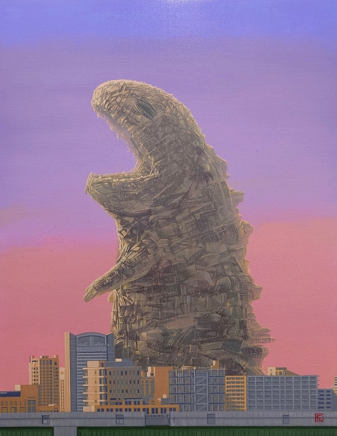 木製パネルに綿布・アクリル絵の具