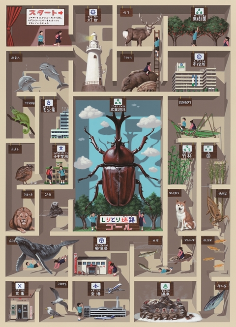 しりとり迷路 2019H60.6 x W45.5 cm12 P木製パネルに綿布・アクリル絵の具(c) 2009 COMBINE ◀︎ All Works ▶︎ ◀︎ ▶︎ ◀︎ All Works ▶︎