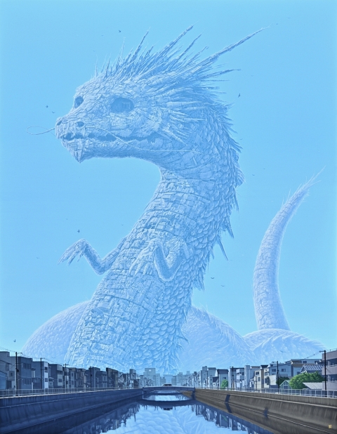りゅうのかいじゅう 2024H116.7 x W91 cm50 F木製パネルに綿布・アクリル絵の具(c) 2009 COMBINE ◀︎ All Works ▶︎ ◀︎ ▶︎ ◀︎ All Works ▶︎