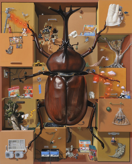 カブトムシの引き出し 2009H162 x W130.3 cm100 FAcrylic on panel(c) 2009 COMBINE ◀︎ All Works ▶︎ ◀︎ ▶︎ ◀︎ All Works ▶︎