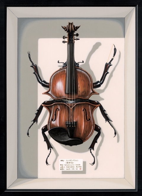 ストラディバリムシ 2025H33.3 x W24.2 cm4 F木製パネルに綿布・アクリル絵の具(c) 2009 COMBINE ◀︎ All Works ▶︎ ◀︎ ▶︎ ◀︎ All Works ▶︎