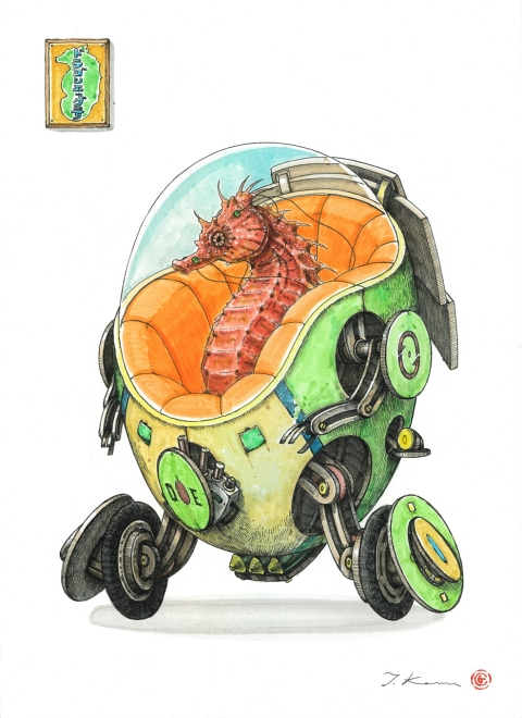 ドラゴンエッグ号 2024H33.3 x W24.2 cm4 F木製パネルに画用紙・ペンとアクリル絵の具(c) 2009 COMBINE ◀︎ All Works ▶︎ ◀︎ ▶︎ ◀︎ All Works ▶︎