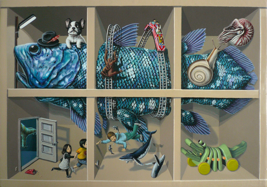 小さな白いキャビネット 2008H15.8 x W22.7 cmシナパネルに石膏地・アクリル絵の具(c) 2009 COMBINE ◀︎ All Works ▶︎ ◀︎ ▶︎ ◀︎ All Works ▶︎