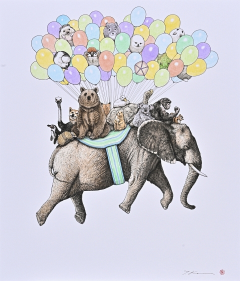 浮かび上がる夢 2024H53 x W45.5 cm10 F木製パネルに紙・ペン・アクリル絵の具(c) 2009 COMBINE ◀︎ All Works ▶︎ ◀︎ ▶︎ ◀︎ All Works ▶︎