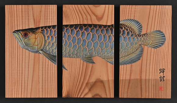 木製パネルに綿布・アクリル絵の具